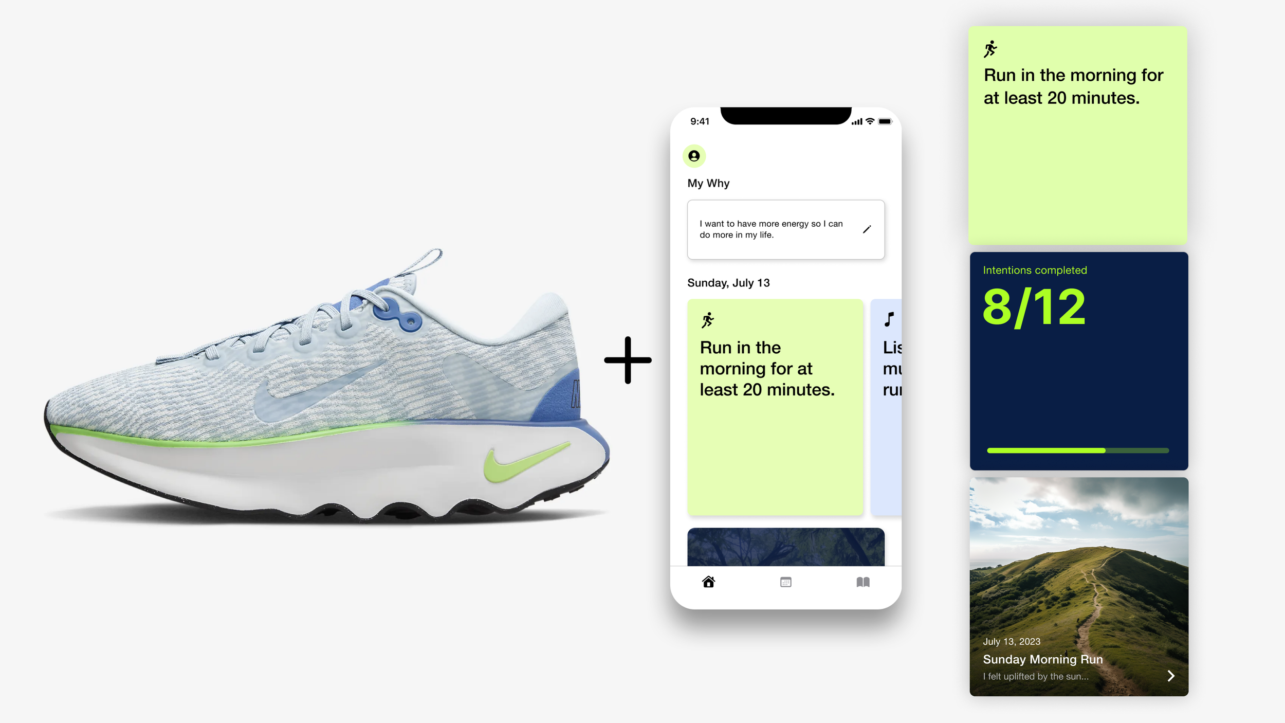 I led digital experience design and partnered with footwear innovation and sports science to build something Nike hadn’t tried before — a product grounded in behavioral science rather than performance metrics. A pilot app shipped. It worked. And it opened the door to a holistic health and wellness strategy that goes well beyond what a watch can measure.